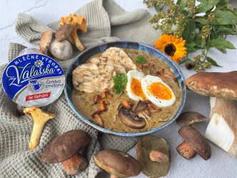 Podzimní recepty: HOUBOVÁ OMÁČKA S KARLOVARSKÝMI KNEDLÍKY A VEJCI a PEČENÁ DÝNĚ SE SLANINOU, OŘECHY A JOGURTEM