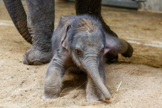 Ono být na světě teprve tři dny je občas náročné i pro slona. Připojené snímky, jak více než metrákové slůně po odpočinku stává, mluví samy za sebe.
